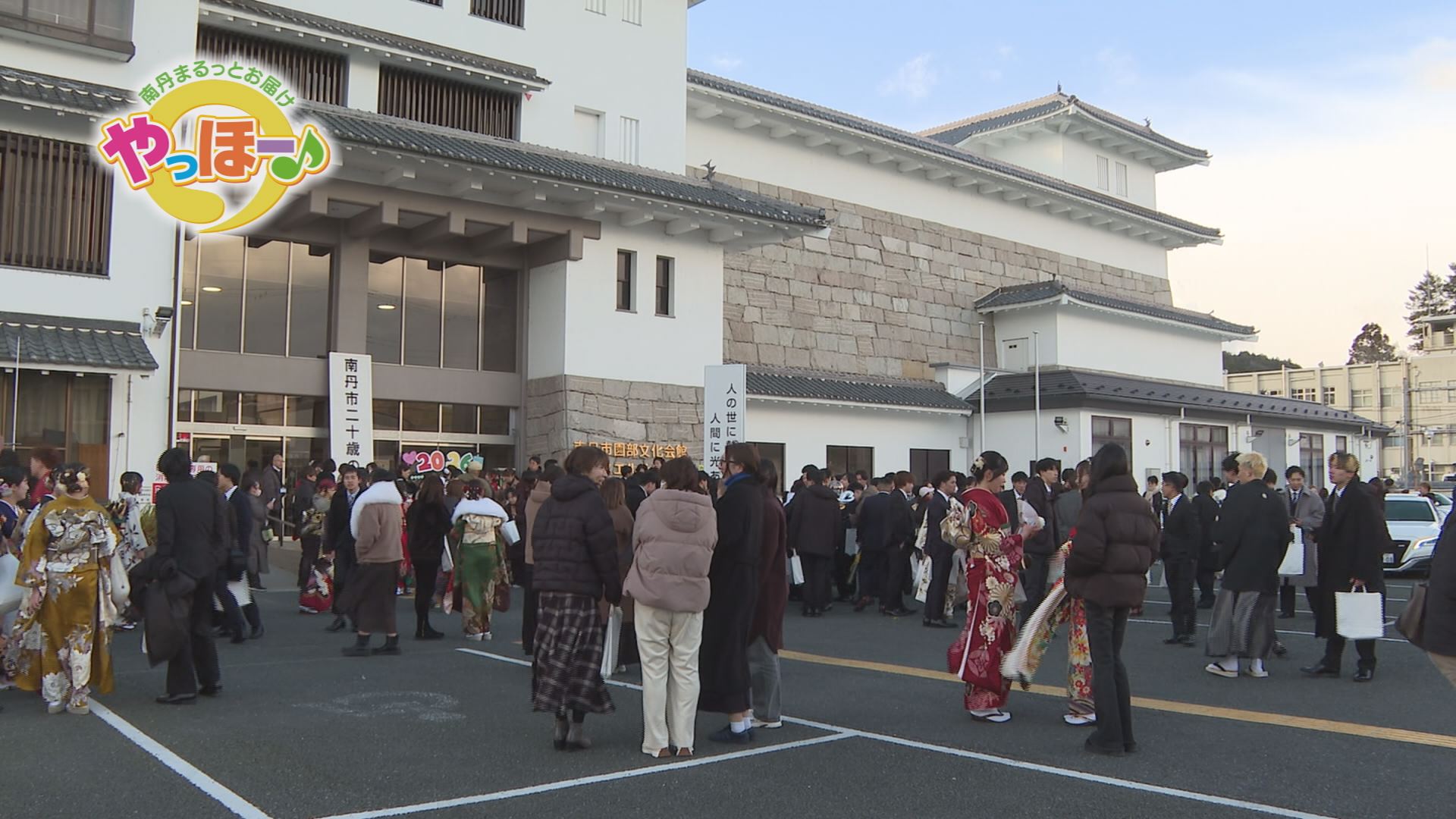 1月11日、園部文化会館アスエルそのべで「令和8年南丹市二十歳のつどい」が開かれ、晴れ姿の若者たちが集いました。