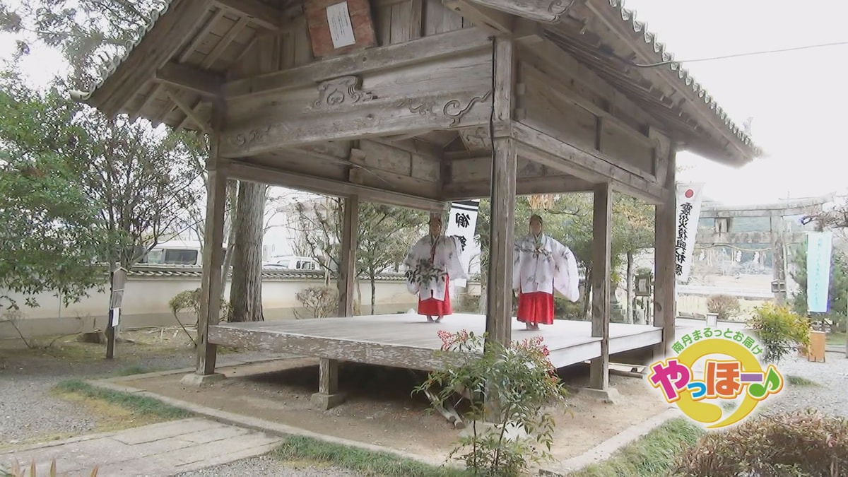 舩井神社の氏子総代らが参列し、勝浦友美 宮司のもと、厳かに神事が執り行われました。拝殿では、豊かに栄えるという意味の神楽舞「豊栄舞」が巫女によって奉納されました。