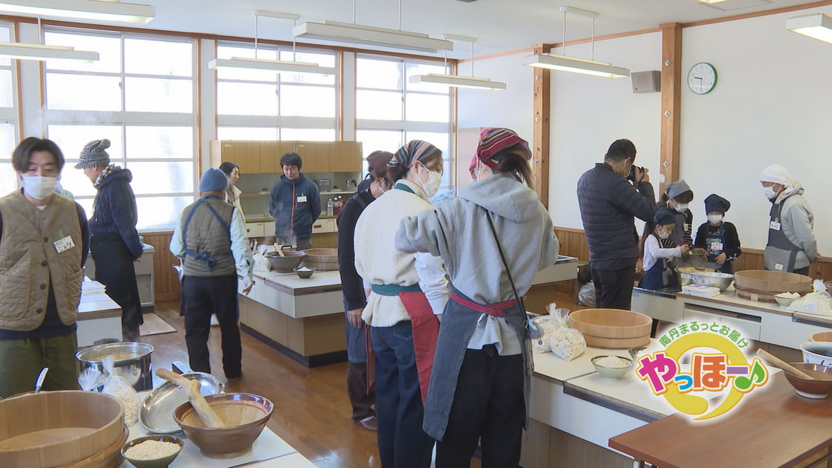 2月21日、美山町の旧鶴ケ岡小学校で、「山里の記憶伝承教室~味噌づくり」が行われました。この取り組みは、鶴ケ岡振興会が地域に受け継がれてきた暮らしや知恵を伝え、移住促進にもつなげようと実施しているものです。